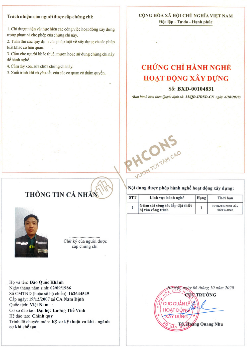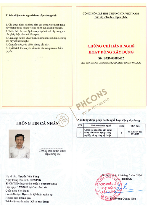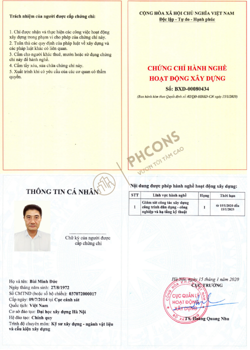 PHCONS có đội ngũ cán bộ quản lý, chuyên gia, kỹ sư giàu kinh nghiệm, trình độ Thạc sĩ cử nhân, kỹ sư... có Chứng chỉ hành nghề hoạt động xây dựng hạng I.