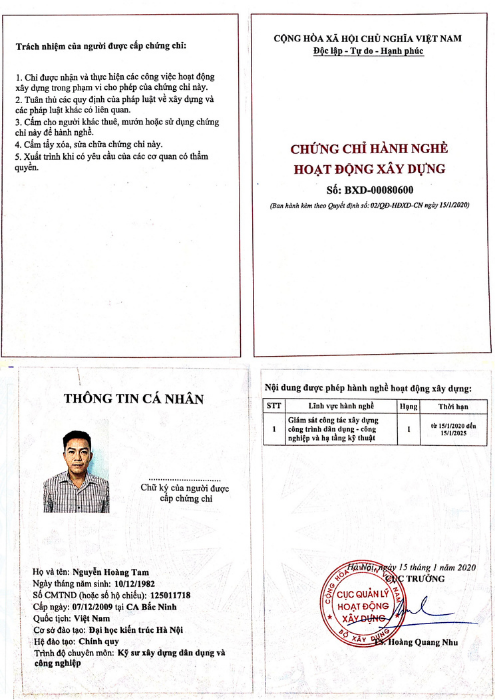 Dưới đây là một số Chứng chỉ hành nghề hoạt động xây dựng của đội ngũ cán bộ quản lý:
